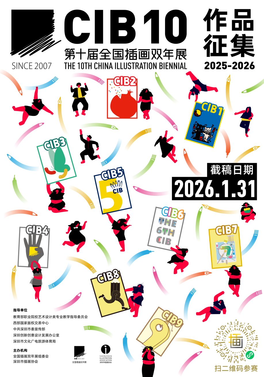 CIB10作品征集的截稿时间为2026年1月31日,符合专业组和学生组规定的中国公民均可在“插画加”小程序报名参与。作品于2023年12月之后已发表和未发表作品可同时参赛,参赛作品应确保系原创内容,拥有完整,明确,无争议的著作权,无素材、创意剽窃行为,不得侵犯任何第三方著作权、肖像权、商标权及其他知识产权等合法权益。