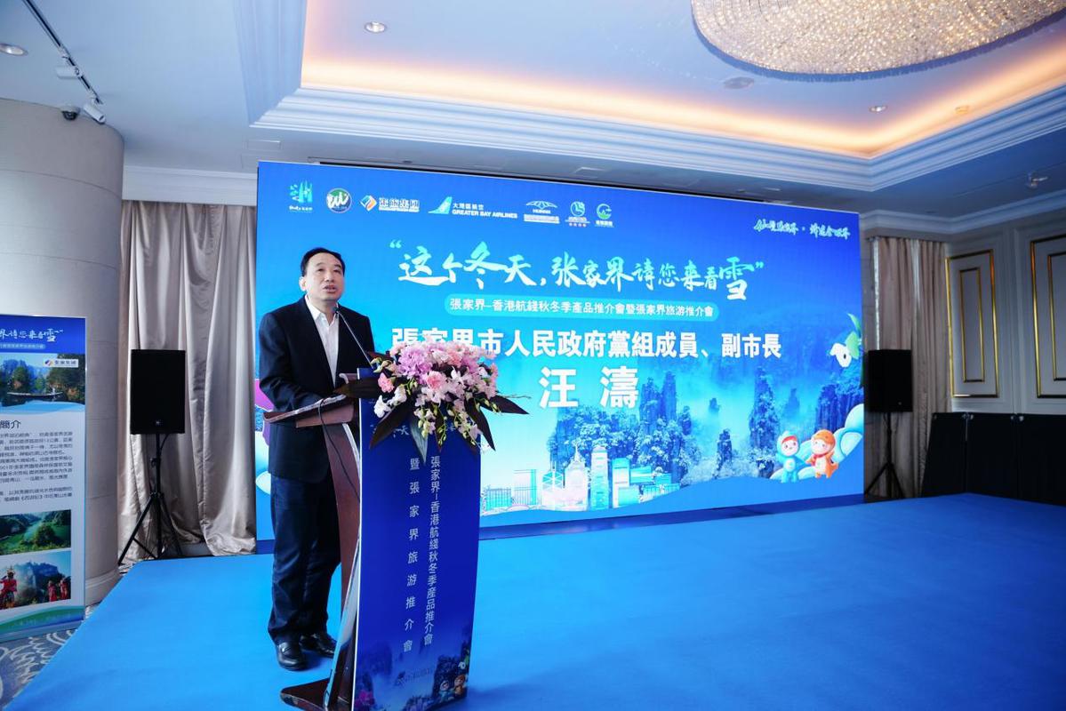 张家界市人民政府副市长汪涛在致辞中表示,近年来,张家界大力实施入境旅游提升行动,2024年全市接待入境游客183.06万人次,入境客源地覆盖183个国家(地区);2025年1-8月,境外游客VISA卡消费榜上排名全国第七,旅游吸引力持续攀升。同时强调,香港与张家界的旅游发展渊源流长,张家界早期的旅游开发与香港摄影家的大力推介紧密相关。而自2023年12月以来,香港-张家界航线克服诸多困难持续运营,这条空中通道更是两地资源对接的“黄金纽带”。