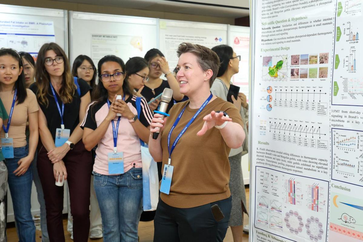 会议为期五天,设置了主题报告、专题研讨会、学术争鸣、实验室参观、海报快闪等多种形式的交流环节。会议以跨学科、重方法、促合作为宗旨,聚焦“中国的能量消耗与代谢研究”“温度与代谢”“蛋白质的影响”“代谢测量方法”“能量调控”等前沿议题展开深入交流与探讨。此外,会议还特设了多个海报快闪环节,涵盖静息代谢率、身体成分、微生物组、代谢疾病等广泛主题,为青年学者提供了展示平台和交流机会。会议期间,与会学者还与知名制药企业代表进行了深入交流,并达成多项合作意向。