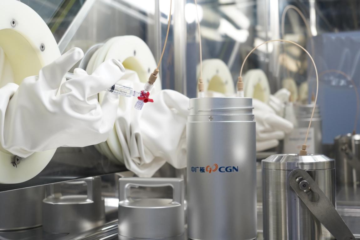 工作人员正在使用中广核医用锗镓发生器淋洗获得镓-68